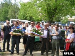 Qytetarët serbë të Kosovës dhe liderët e tyre kanë vendosur lule dhe kanë ndezur qirinj pranë përmendores së të vrarëve gjatë bombardimeve të NATO-s mbi caqet serbe.