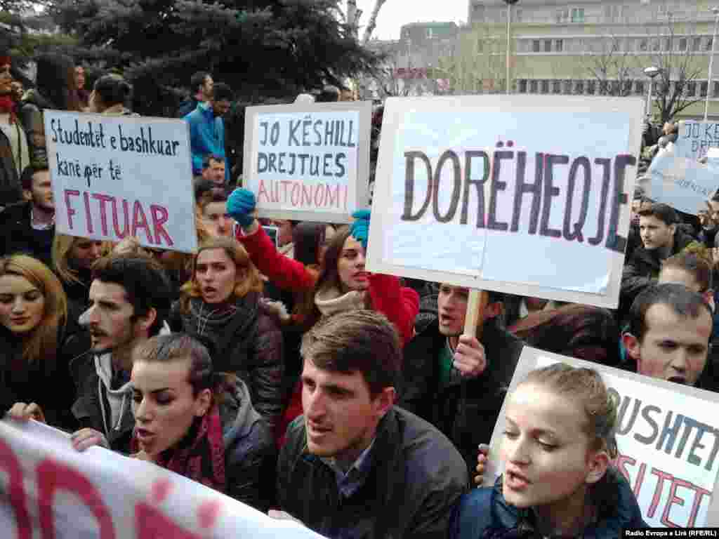 Studentët e Universitetit të Prishtinës, nën organizimin e katër organizatave studentore, kanë marshuar sot nga Qendra e Studentëve dhe sheshi “Skënderbeu” deri para objektit të rektoratit të këtij universiteti ku kanë vazhduar protestën, me kërkesën që rektori Ibrahim Gashi të japë dorëheqje.