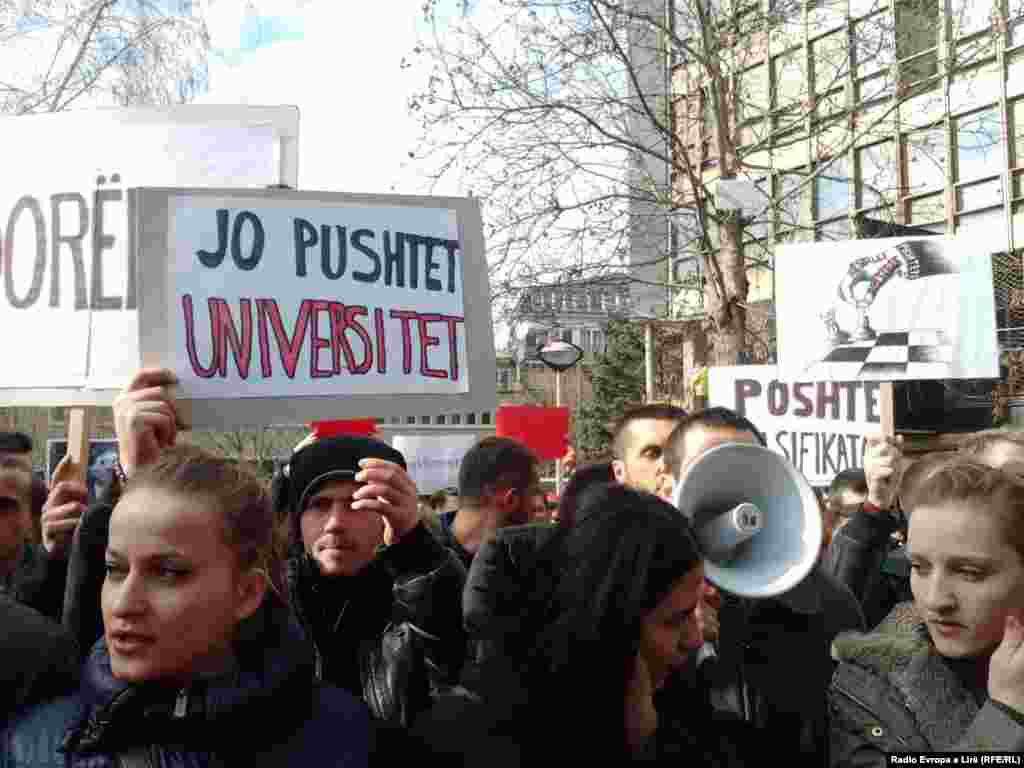 Studentët e Universitetit të Prishtinës, nën organizimin e katër organizatave studentore, kanë marshuar sot nga Qendra e Studentëve dhe sheshi “Skënderbeu” deri para objektit të rektoratit të këtij universiteti ku kanë vazhduar protestën, me kërkesën që rektori Ibrahim Gashi të japë dorëheqje.