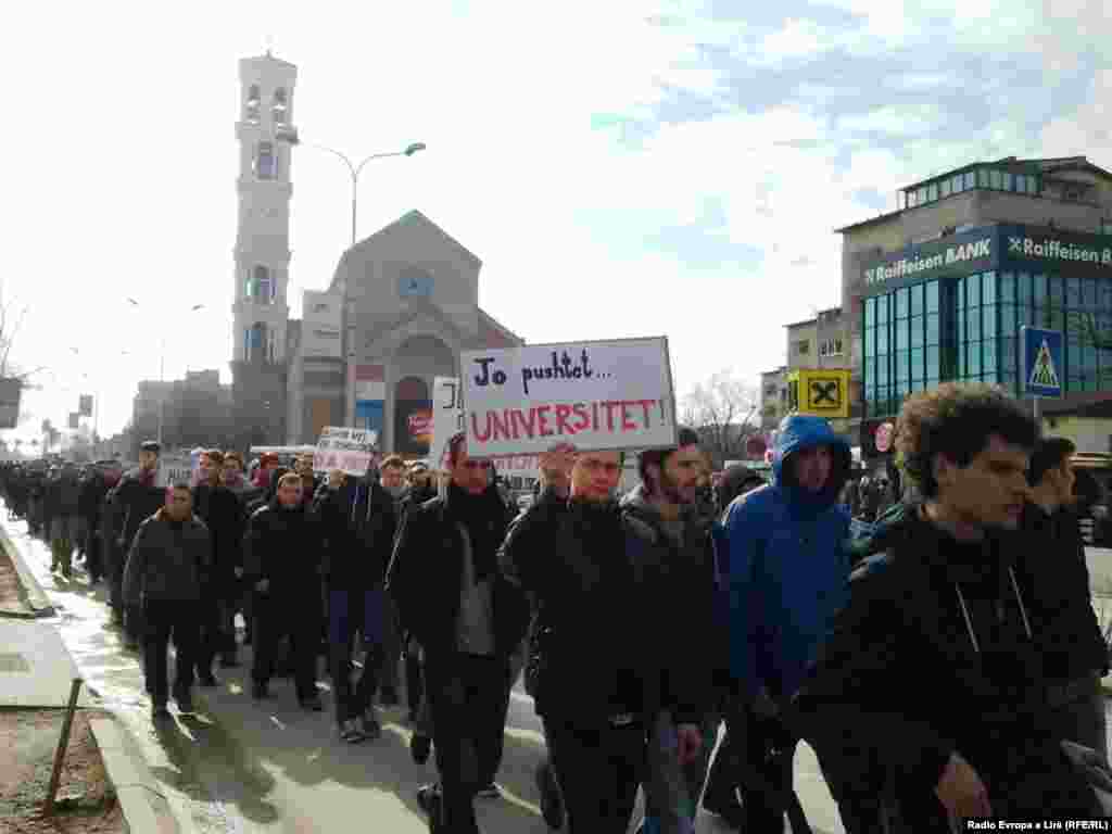 Studentët e Universitetit të Prishtinës, nën organizimin e katër organizatave studentore, kanë marshuar sot nga Qendra e Studentëve dhe sheshi “Skënderbeu” deri para objektit të rektoratit të këtij universiteti ku kanë vazhduar protestën, me kërkesën që rektori Ibrahim Gashi të japë dorëheqje.