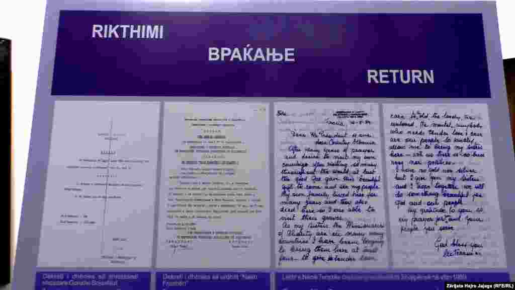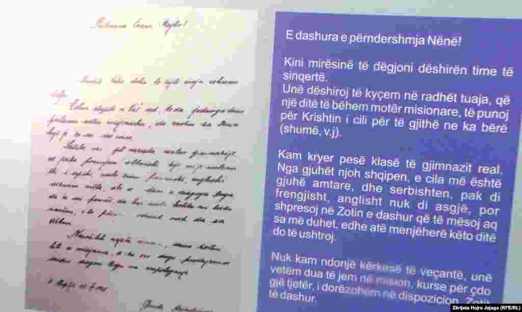 Instituti për Trashëgimi Kulturore i Shqiptarëve të Maqedonisë, në bashkëpunim me shoqatën e Historianëve Shqiptarë në Maqedoni, me rastin e 106 vjetorit të lindjes së Anjezë Gonxhe Bojaxhiu - Nënë Tereza, dhe në prag të shenjtërimit të saj, në Galerinë Nacionale “Hamami i Daut Pashёs”, ka organizuar një ekspozitë me emrin “Shenjtorja nga Shkupi – letërkëmbime”, pjesa më e madhe e të cilave i shfaqen publikut për herë të parë.